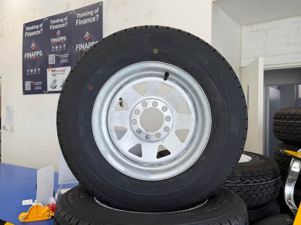 Perfect for trailers, caravans, boat trailers, box trailers, camper trailers, and more. High-quality galvanised rims + durable Wanda tyres.