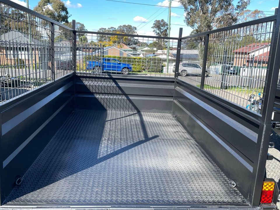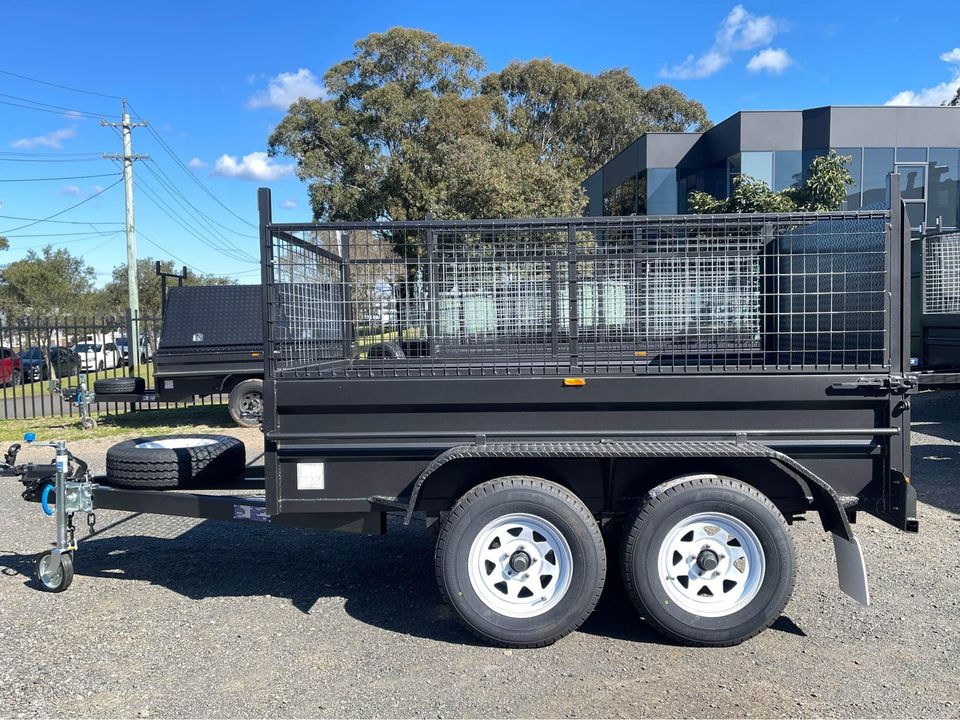 8×5 Tandem Box Trailer High Side with 600mm cage and checker plate ramp2Ton GVM with mechanical disk brake2x45mm square solid axle rated 1400kg each