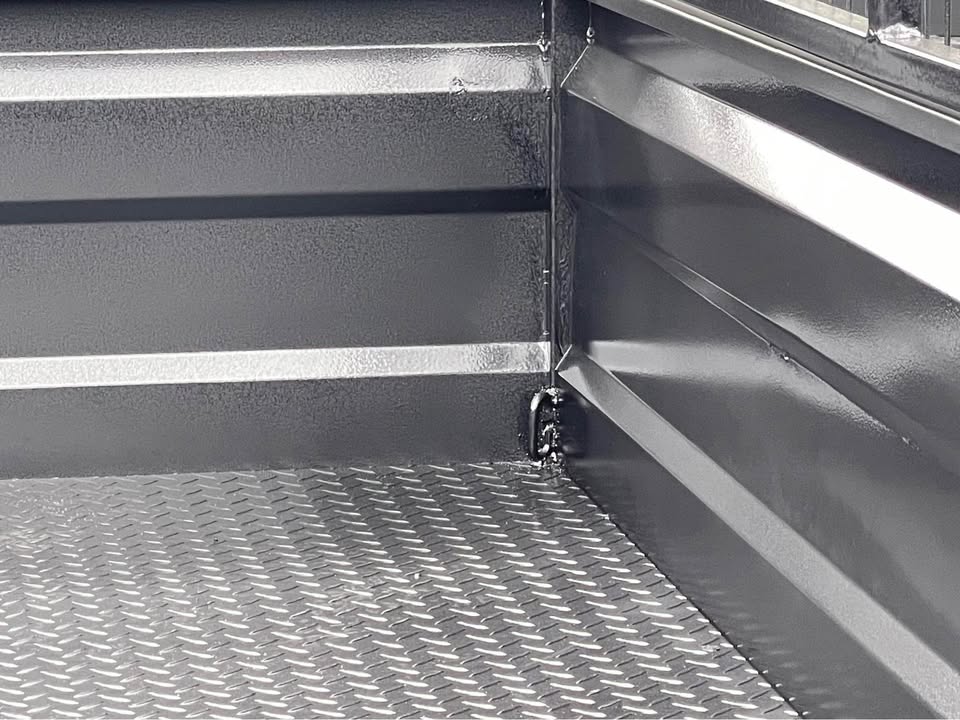 – Checker plate floor and mudguards